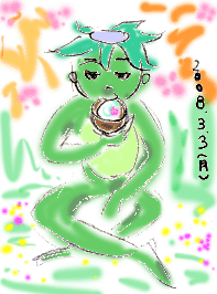 お花見を楽しんでいるカッパの絵です何となくノートに落書きしたものに、PCで色を付けてみましたちょっとコワイアネージャは最近ご多忙なためブログアップしていません。私はそれに便乗して・・・サボっちゃってました。世間は春めいてきて、プロ野球もオープン戦が始まりました。また1シーズン、熱い戦いが始まりますなぁfrom イモウージャ