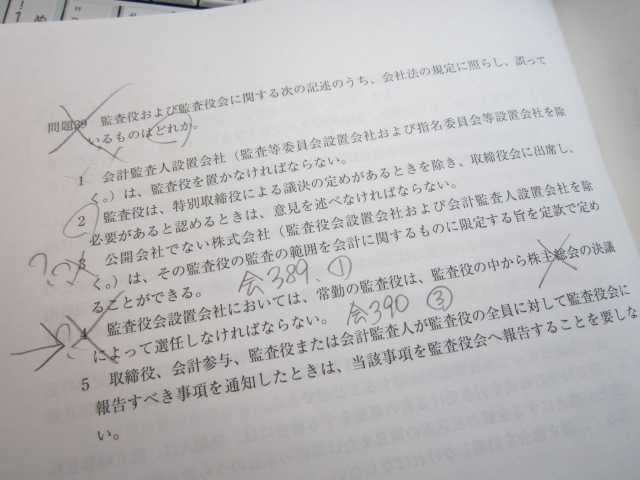 みなさん、こんにちは。今日で11月も終わり。各地でスキー場もオープン。いいよ本格的なシーズンインですね。さて、ボクといえば 先日受験してきた行政書士試験の振り返りをしています。例えば会社法の問題39 5個の肢から、誤っているものは?の問題ですこれはボクは間違えてしまいました。1 2 5は合ってる。肢3 公開会社でない株式会社は、その監査役の範囲を会計に関するものに限定する旨を定款で定めることができる。肢4 監査役設置会社では常勤の監査役は、監査役の中から株主総会の決議によって選任しなければならない。どちらか迷い、ボクは3を選択…しかし、正解は4(-_-;)。3は会社法389条1項に。4は会社法390条の3監査役は、監査役会の中から常勤の監査役を選任しなければならない「株主総会」決議は不要なんですな。いやーこの389条、390条はノーマーク。知らねーよ、そんなの…(TT)つまり、条文はただ読み込む名家ではなく、ポイントを覚えないとならんのだなーと、痛感しました。条文は大事だよ…次回に続く…にほんブログ村 (ランキングに参加中です!よかったらクリックしてください。↑)