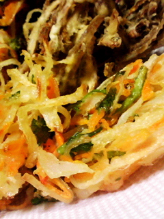 5/10の夕食かき揚げ(野菜&小魚)ざるうどんこの日はほかに、サラダ