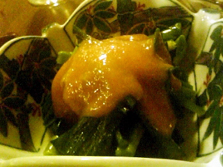 5/20の夕食@権堂某蕎麦屋さんで行者にんにく(酢みそで)根曲がり竹かんぱちほかに、わさび菜おひたし、揚げ茄子、厚揚げ〆はもちろん、ざるそばビール、そば焼酎大満足