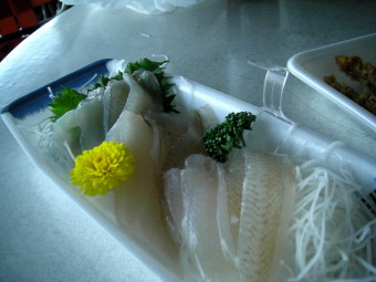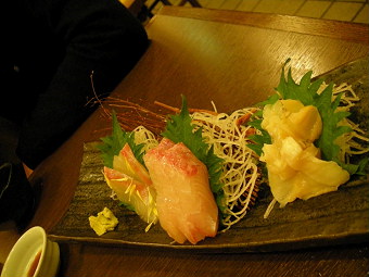 5/5の夕食@新潟市某所刺身三点盛メギス唐揚げ朝日山