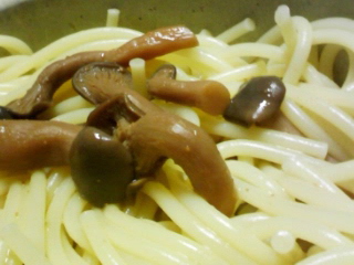 5/9の夕食同居人不在のため、ひとりでしめじとたらこの和風スパゲティ(レトルトソース)たまごと青菜の炒め物