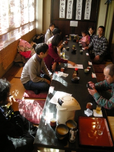 11/4フロイデのみなさんが長野に遊びに来てくれた。寒くならなくてほんとによかった。長野駅でみなさんと合流。とにかくまずは駅付近の蕎麦屋へご案内。ほんとはおれがよく行くお気に入りの蕎麦屋もいくつかあたってみたのですがどこも既に満席で席も座敷も予約ができなかったのだ。無念。で、駅近くで子どもがたくさん居て騒いでも大丈夫な感じの店の座敷を取ったのでした。それがここ。さすが連休。なんとか確保できてよかったです。こうやって賑やかにみんなが揃ったのを見て、ほんとうに幸せでした。子どもたちがうれしそうに騒いでいる情景を見るのもうれしい。そう、みんなとはこうやって過ごしてきたんだよね。子どもたちはみんな大きくなった。みんなちっちゃい赤ちゃんだったのに。野沢菜の天ぷら。野沢菜天は正直言っていまいちな場合もけっこうあるんですがこの店のは「当たり」でよかったです。美味しく揚がってました。よかったあ〜。ほかにも天ぷら盛り合わせや信州サーモン刺身や馬刺など頼んで、飲める人はビールを飲みました。おれももちろん飲みました。蕎麦も美味しかったし、いよいよ善光寺へ。ぐるりん号で行きました。善光寺へ。途中アイス食べたりして、いろんなペースの子がいるので近くにいるのになかなかたどり着かない。それがまた楽しかったりする(笑)みんなで記念撮影。子どもがいるとどうしてもこんな風にごちゃごちゃになってしまうが、それがまた良い。善光寺のあとは某店で栗あんしるこを食べたりして解散。しあわせな一日でした。みんなほんとに遠くまでありがとう。感謝します。早くフロイデに復帰してみなさんと音楽したいと思いました。がんばります。ああ、楽しかった!生きてみんなに再会できてよかった