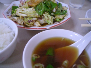 2012/11/3土曜でふつーに休みですがよく考えたら世の中は祝日だった。昼食は家内とお気に入りのいつもの杏林で。おれは回鍋肉と半ライス。美味しい。この店のふつーのライスは丼に大盛の量です。これは半ライスとか言ってますがふつうのご飯茶碗にたっぷりで、けっこう量が多い。今のおれにはこれで十分すぎる。節制してるし胃が少し小さくなったかもしれません。餃子。ここの餃子はほんとに旨いと思う。大好き。まず、皮がとても良い。家内は五目焼きそば。おれもこれは大好きな一品。あんかけ焼きそばではない「炒め」系の焼きそばの中ではここのはおれ的にはかなり上位にランクします。値段も考えると、もうベストに近いかもしれない。ここの五目焼きそばはゆで卵の上に錦糸卵がかかっているのがチャーミングだと思う。会計のときにマスターとちょっと言葉をかわす。おもしろいおっちゃんだ。おれはもうすっかり面が割れてしまっていて、最近は何となく常連風の扱いをされている感じ。仕事場。帰宅して夕食豚肉のリンゴ煮などこんなふうに野菜がかなり多いです。副菜も野菜だしね。