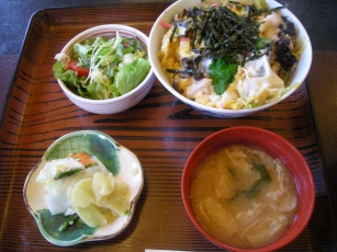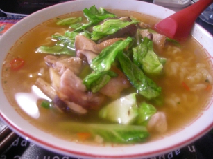2014/04/20ひどく疲れているが何とかふつうに朝食準備。本当に、こんなに疲れているのは久しぶりだ。実家の庭で育てていた青菜を朝食に食べてみた。美味しい!午前は家内とがんばって実家へ。おれはレッスン。昼、家内と車で松代へ。まずは駐車した近くの小さな神社でお参り。白菜や葱がカジュアルな感じにドサドサとお供えしてあった。こーゆー小さなふつうの神社もそれなりの風格がある気がする。さすが歴史のある街はちょっと違う。松代病院近くの和佳で昼食。ここはおもしろいなあ。いい雰囲気だ。地元のおっさんが昼間からふつうに店のおかあさん相手に焼酎飲んでたりする。おれも家内も一発で気に入ってしまった。もう一回行きたい。スープ焼きそば。とてもおもしろい。初めて食べる味。不思議な食べ物だ。おいしいけど。ソース味の焼きそばをラーメンのように仕立ててあるとゆーことか。胡瓜が乗ってるのは何となく冷やし中華っぽくもある。ちょっと酸味のあるスープはケチャップがはいっているのかもしれない。ホントに独特。家内はオムライス。昭和な感じの素朴なオムライス。こーゆーのも良い。大満足で清水寺へ、去年秋に行ったとき若住職さんに春は桜が綺麗ですからぜひおいで下さいと言われたので行ってみたらマジ綺麗だった。びっくり。もちろんすばらしいこちらの仏像も拝観させていただきました。何度観ても素晴らしい。圧倒される。近所のにゃんこ。ちょっと具合悪そうでかわいそうでしたお隣の西楽寺の真田信重霊屋の周囲の桜も素敵でした実家に戻って夕方まで庭の作業いろいろ。おれはひたすら草取り、家内は花を植えたり雪菜やルッコラの面倒みたりいろいろ。買い物しながら帰宅。夕食実家の庭で収穫した雪菜やルッコラを使ったサラダ。旨い!ブイヤベース風炭水化物は、なし。久々に泡盛飲む。ロックで。この日の楽天日ハムは2-4で負け。むむー。三連勝してほしかったなあ。