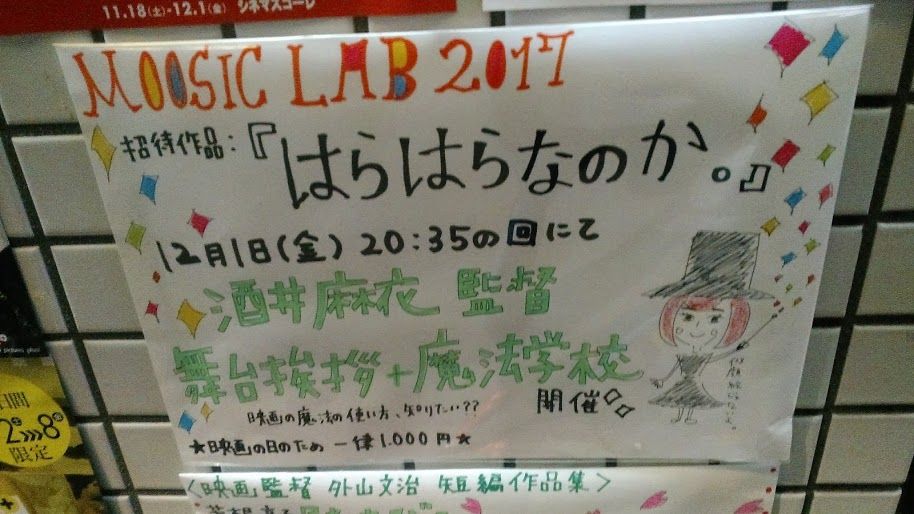 2017/12/0111時のしなので名古屋。昼食は車内で第一楼の豚レバー炒め弁当510円車中は池上彰「この日本で生きる君が知っておくべき「戦後史の学び方」 池上彰教授の東工大講義日本篇」読。まずスコーレ。夜の「はらはらなのか。」&魔法学校の整理券ゲット。5番だった。よっしゃ!とりあえずホテルにチェックイン。読書池上彰「この日本で生きる君が知っておくべき「戦後史の学び方」 池上彰教授の東工大講義日本篇」読み続ける。わかってるつもりのことが、意外とよくわかってないことがよくわかる。この日本で生きる君が知っておくべき「戦後史の学び方」 池上彰教授の東工大講義日本篇 (文春文庫) [ 池上彰 ]吉野家で夕食牛黒カレー。550円んー。おれは松屋のカレギュウの方が旨いと思う。スコーレへ。「はらはらなのか。」長野ロキシー、渋谷アップリンクときて今回で三回目。観る度に良い。酒井監督の目で見る世界は最高に素敵だ。黒い雨以降ワッフルを中心とした一連のシーンは圧巻。ものすごい鳥肌状態で涙ぐんで観た。たぶん「はらはら」を何度か繰り返し観たら鳥になれる気がする。今回は松本まりかさんにやられちゃったな...素晴らしい。粟島さんが雪の中喫茶店に入って来てからのシーンでの彼女の芝居は圧巻。ここはひたすら感動的だと思う。過去と未来、生と死が緩やかに穏やかに混じり合う幸福。泣けちゃうね...。本当に素晴らしい。酒井監督のこーゆー感覚は素敵だ。その後、舞台初日で松井玲奈ちゃんに松本まりかさんがダブってくるところも本当にすごい。松井玲奈ちゃんの芝居が「さりげない」のに実は「ものすごく細かい」芝居に驚嘆。初回は主演の なのかちゃんに注目して観るし、どうしたってミュージカル的な派手な場面やmicciさんに目が行ってしまう。micciさん強烈すぎるんだよ(あり得ない芝居&存在なのに、なぜか自然)二回め以降は玲奈ちゃん演技もじっくり注目して観ることができる。さりげなく繊細。彼女のちょっとした表情にも重要な伏線がさらっと表現されていたりする。川瀬さんやっぱりいいなー。スコーレはこのあとOP映画で山内監督の作品や「つちんこ」が続くので、ちょっとした川瀬さんフェスみたいになってる。わはは。凛ちゃんのウィンク凄い!階段でウィンクかまされて倒れる男子にはマジ共感。上映後、酒井麻衣監督登場して魔法学校。8月のアップリンクの魔法学校も超良かったけど、尻切れトンボでやや中途半端なものだった。今回の魔法学校で溜飲下がりました。スコーレのイベントは やっぱり良いです。空気感からして全然違う。うーん、監督、かわゆす。このコス、定着して来たなー。上映されるべき場所で「はらはら」が上映されて良かった。魔法学校も、開催されるべき場所で開催されて言うことなし。素敵な一夜に感謝。酒井監督の次回作(スマホ映画)のお話がたくさん聞けてよかったです。わくわくする。完成が待ち遠しい!魔女と狼男かー。すげえ。西村監督も関わってるとのこと。ドキドキする。小林勇貴監督の「へドローバ」も観たい。「全員死刑」は近日中に長野公開になるのでもちろん観ます。酒井監督からの宿題「ミッキーのジャックと豆の木」「ムーランルージュ」を観ておくこと。