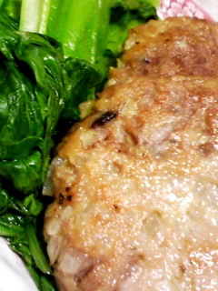 ハンバーグ(パンダ豆入り)、つけあわせに青菜