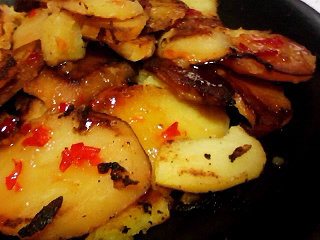 炒めたジャガイモにスイートチリソースをかけただけなんだが、