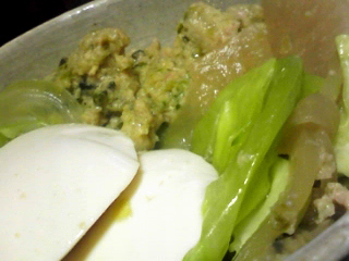 前夜の餃子の中味が余ったので、そこにひき肉を足して肉団子に