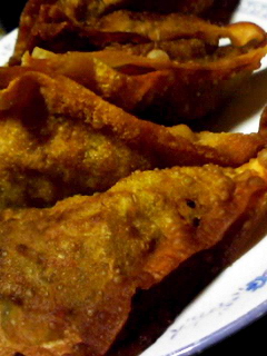 カレー味のコロッケの中身をシュウマイの皮に包んで揚げたものです