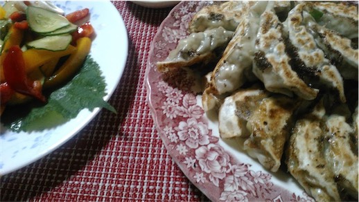 ナスの餃子。中身はナスと鶏ひき肉。超ヘルシー。うまい。