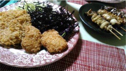 ハムカツ、海老カツ、焼き鳥