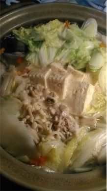 鱈の鍋。鱈は下に潜ってて見えないな。