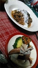 ほうれん草と豚肉の煮物。トルコ料理だったかな。ヨーグルトかけて食う。たくさんかけた方が美味しい。