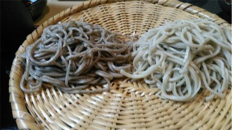 戸隠在来種手臼玄挽きと雪がくしそば(手臼挽き無篩い粗挽き)の合い盛りとのこと。難しいねえ。一回言われただけでは理解できない。とても日本語とは思えん(笑)。