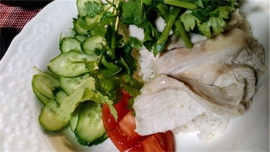 カオマンガイ。美味しいタイ米があると、実にいい感じに仕上がる。
