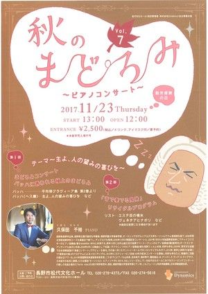 久保田千裕くんの「秋のまどろみ Vol.7 ~ピアノコンサート~」を聴く