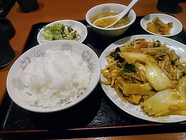 モツ辛みそ炒め定食。700円。ちゃんと美味しいです。