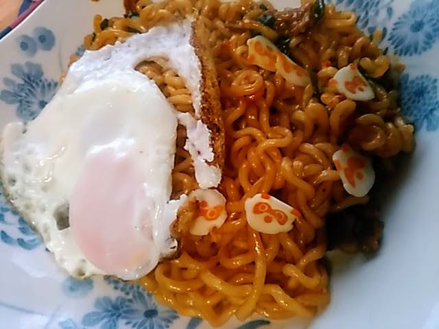 辛さはプルダックポックンミョンに比べたら、かなりマイルド。