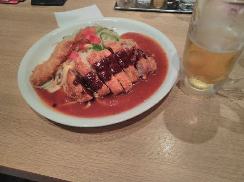 味噌カツとエビフライの乗ったなんだかものすごいモノを食う。すげえ…。