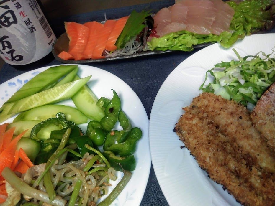 夕食。魚など。 宮坂酒造 の真田十万石飲む。うまい。昨日買ってきたお酒。