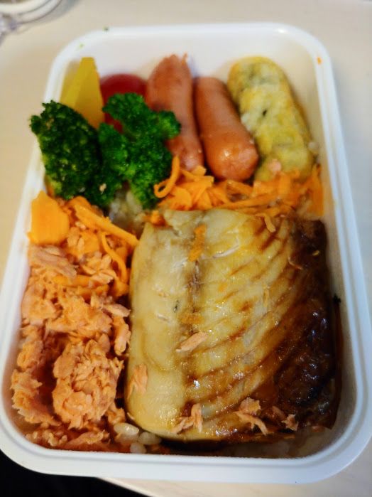 昼、自分でつめた弁当食う。