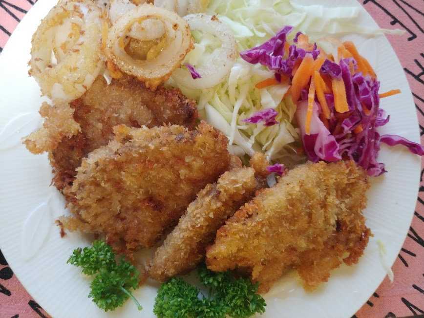 夕メシ。レバカツ。家内作。旨い。