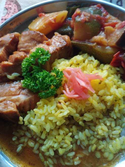 昼、金の角煮、ターメリックライス、ラタトゥイユなど