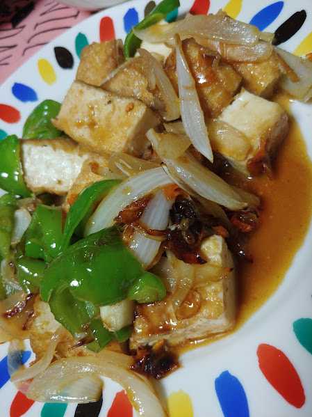 夕メシ、厚揚げエスニック炒め。
