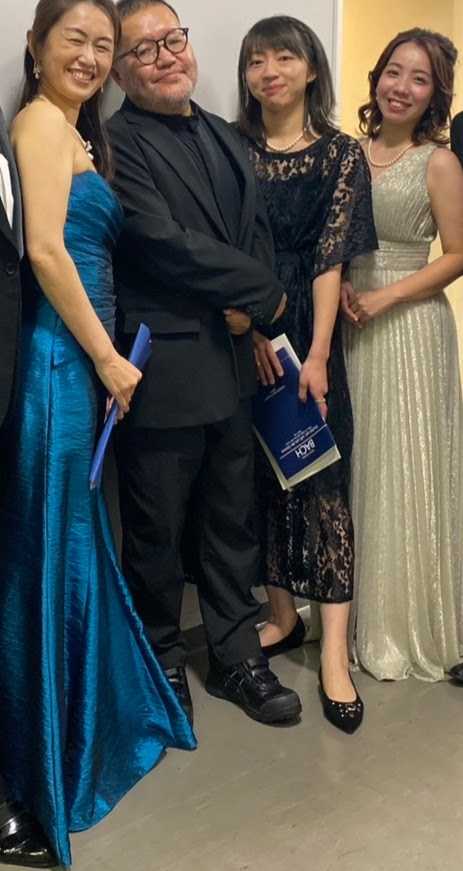 このコーラスは大下先生のご指導で、大学内で活動してきた。コーラス(特にバッハ)は学内だけで編成することは困難。男声はほとんど一般の愛好家の皆さんで、女声には大下門下の方々が混ざるとゆー感じのプロアマ混成チーム。アマと言っても大下先生の指導を受けられた方もいらっしゃるし、通常のアマチュアコーラスに比べると歌える方が多いと思う。後輩ちゃんたちが発声はもちろん事前指導もおれの意図を汲んで丁寧にやってくれてたので、おれはホントに楽させてもらった。