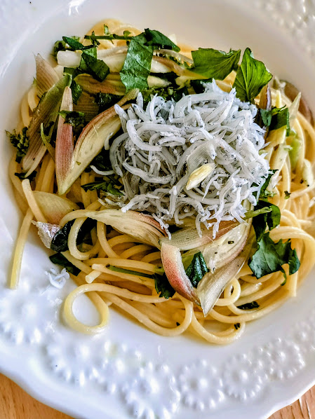 昼、大葉としらすパスタ