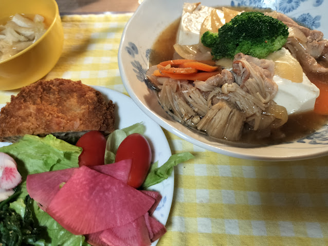 夕メシ肉豆腐つくる。ほか惣菜メンチ