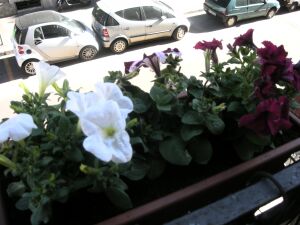 13日金曜日、最高気温18度。オーバーと、ブーツを履いていると、汗が出てくるほど、暑かった。「もう春?」を、思わせるほど。 ただ怖いのは、今年の冬はとても寒かったのと、去年の春はとても寒かったので、すぐ暖かかくなるは、まだ信じられないし、今年は雨がたくさん降ったので、また雨が降らないとは限らないので、なかなか春物を出す気にはならない。 土曜日も暖かかった。でも金曜ほどではなかったので、マフラーは必要だった。皮ジャケットを着る気候だった。 今日も暖かかった。ただミラノは、昔は4季節あったそうだが、今では、春、秋がほぼないに等しい。いきなり暑くなったり、いきなり寒くなったりする。だから、春物、秋物をあまり買う必要がない。 14日土曜日、日本人学校。今週も宿題に泣かされました。その後、スーパーで大お使い。夜は、テレビ「Ballando con le stelle」を、家族で見ました。tv番組の著作権利は、イギリス。 15日日曜日。今日も良い天気。娘と主人は、いつものごとく、ミサに行った。 もう直ぐ春。我家のバルコニーの整理。今年は、花が冬の悪天候の為、ほぼ全滅。これを全て直すのは、かなりの費用が...昨日スーパーで安く売っていたゼラニウム。買ったので、プランターに植えました。大きくなって、ふさふさするには時間がかかります。とりあえず、ゼラニウムから始めました。どのくらい死んでしまったかを、見なくてはならないし。もう少し待って、芽が出てくるか見る。そして、少しずつ始めていく方が、経済的にも楽? 我家のバルコニーは、近所ではちょっと評判です。我家自慢のバルコニー。小さな広場に面していて、大学、高校が近い為、昼食時には、人がたくさん集まります。夕方も近所の喫茶店に人がたくさん集まります。毎年、バルコニーの計画を立てるのだが、今年は..... 去年のバルコニー。なかなか可愛かったでしょう?今年は5歳のゼラニウムも死んでしまったみたい。横には、バジル、サージ、タイム、ローズマリーノそして、シソなんかを植えます。 ゼラニウムは、蔓のもので、下に生えていきます。これは、ペチュニアの蔓性のもで、特にうちの主人はこの花の紫が好きで、毎年植えてます。 イタリアの習慣、日曜日は、ケーキ作り。今の季節、イタリアでは、イチゴが出回り始めます。この季節、いちごを見ると作りたくなるのが、イチゴタルト。と言うことで、作りました。 このレシピは、NHK今日の料理から、お菓子は、日本のレシピがいいのは、サイズが小さいこと。バターの量が少ないこと。カロリー控えめだと思う。