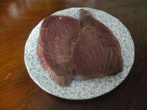 24日火曜日。晴れ、15度だが、風がある。強風で、風邪を引いている私には辛い。 しかし、つい市に出かけてしまった。と言うのも、お金をかけないためにも、少しづつバルコニー用の花を買うことにしたから。 市(メルカート)で、まず、魚屋に行きます。ここは新鮮で有名な為、早く行かないと、いい魚に逃げられるから... マグロ、イタリアでは、寿司用の新鮮なマグロ=高いと、煮物用=あまり色がよくない。があります。これは、新鮮だが、色ではイマイチ生で食べようとは思わない。 先週から、spezzatino di tonnoを食べたかったが、先週は、このマグロが見つからなかった。野菜屋で、カルチョーフィを買う。今が旬! 花も買ったが、風が強いので、バルコニーに置きっぱなし。 今日は、風邪を引きとても辛い日だった。はっきり言って、今日はスーパーには行きたくなかったが、どうしても無塩バターがなく、娘のおやつない攻撃に負けて、行った。 昼食後、ガトー・チョコラを作った。 娘を迎えに行くと、友達の家に遊びに行くと言う。今週日本人学校がなく、宿題もたいしてないので、OKする。よって、おやつ用にお菓子を作ったのに、あまり意味がなかった? 家で、姪へのジャンパースカートを縫う、夕食用に、トマトを茹でて、皮をむきさいの目にきっておく。それから、娘を迎えに、友達の家に行く。 その後、近所のお店に顔を出したのが、間違い。挨拶のつもりが、1時間もいてしまう。よって、家に帰ってきたのは、19時45分。 夕飯は、spezzatino di tonno,マグロのぶち切り煮込み。先週からしたかった料理。肉料理で、よくぶち切り煮込みをします。 にんにく、玉ねぎのみじん切り、ペペロンチーノ、アンチョービを入れて、オリーブ・オイルで炒める。その後、マグロを入れて、全体に焼き目が付いてきたら、白ワインを入れて、ケッパー。黒オリーブ(リグリア地方のタジャスケがいい。)蒸す。その後、皮を向いて、果肉の部分をさいの目,切りにしたトマトを入れ、煮込む。途中、トマト・ピューレを入れて、色を付けるのもいい。 西洋パセリを添えて、出来上がり カルチョーフィのワイン蒸し炒め。これが市場の美味しい食べ方だと思う。
