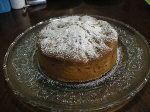 29日日曜日。雨。一度雨が降り始めると、なかなかやんでくれない。最高気温も10度と結構寒い。それより、バルコニーに植えた花が心配である。特にゼラニウムが寒さに弱いと言っていた。 今日は日曜日。なぜか日曜日にケーキを焼くお母さんが、イタリアでは多い。 たまたまテレビで見ていて思いついたので、やってみた。りんごのケーキ。 作り方は、スポジケーキを作る感じで、バニラエッセンスの変わりに、ラム酒を少し入れて、最後に生地を型に流した後、りんごの薄切りを中心に十字に差し込み、次に間、間にりんごを差し込んで行く。最後に粉砂糖をかけて、出来上がり。結構美味しかった。