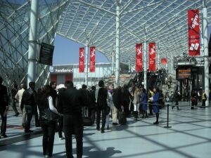 20日月曜日。朝から家の整理と掃除と洗濯。明日から通訳の仕事が3日間入っているので、今日中に全部しなければならない。 基本的に仕事をする前の日は、何もしたくないのに、なんと旦那の妹が来ると言う。 そして仕事に来ていく服が、まだ仕上がっていない。なんとも三重苦な日であった。 この妹、いつもミラノに来ると、「ここには泊まりたくない。」と言っているのだが、私の日本からの友人が泊まりに来ることもあるので、結構お泊り用に準備が整っているから、泊まりに来て見ると、「結構快適!」と分かったみたいで、一泊のはずが、三泊になってしまった。 おかげで、私が働く間居る事に。大変困るのは、夕飯を家で食べるか分からないから、ろくな夕飯のもてなしが出来ないことで、後で文句が出るのだが、こっちが仕事がある時に、わざわざ来なくても.....と思ってしまう。本当に他人の事など考えないから.......... 21日から通訳の仕事。 22日水曜日から、見本市サローネ・デル・モービレへ行きました。インテリアデザインの見本市。私はいつもファッション系の見本市で働くから、この見本市は始めて、こんなに大きくて、大勢の人が来るので、ビックリした。 これが入り口付近。ここはミラノの郊外に位置しますが、地下鉄で行けるので、かなり便利です。地下鉄は、日本並みに込んでいて、ビックリ!! このガラスの柱?が、シンボル的な存在。かっこいい!! 上がガラス張りで、下がこのようになっています。 とにかく、この不景気で、ファッションの方は、人が減っていましたが、このsalone del mobileは、凄い人で、大成功でした。ミラノは、ファッションより、インテリアの方が重要だったのね~と、改めて感じました。活気も違うし、新たにいつも新しい物、新しいテクノロジーに挑戦など、イタリアはとかく保守的なのだが、この前進性には、驚かされた。日本人がたくさん来ていたのにも、ビックリした。