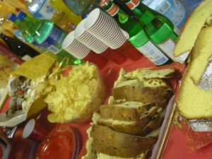25日金曜日、もっと寝ていたいのに、9時には興奮して起きてしまった娘。驚く顔をビデオに撮りたくて、仕方なく起きた私。 直ぐにプレゼント開けが始まった。「今年はいつもよりプレゼントの数が少ないじゃない!」と、すぐ言う娘。サンタさんに頼んだものは、ほぼ手に届いたので、取り合えず満足しているようだった。(イタリアは日本と違って、多数プレゼントをもらうんです。) かなりカロリーの高い昼食が、待っているので、毎年コーヒー、紅茶だけ飲みます。このコーヒーカップは、クリスマス用のカップ!去年も見せましたが、かなりクリスマスしています。 この後、娘と旦那は、教会のミサに行きます。 その間、私は昼食を準備します。 今回はお客様なしの気楽な昼食。 前菜。 有名なトルテッリーニ!これは、キャンディーと呼ばれているキャンディーの形をしています。飴のつつみの形をしているんです。 polpettone!日本ではミートローフと呼ばれているみたいです。ただ、またもや写真を撮り忘れ、ジャガイモは食べてしまいました。ローストのやり方と同じ。オリーブオイルで炒めた後、にんにく、ローズマリー、セージを入れて、コンソメを入れて、煮ます。 デザートは、クリスマスに食べられるパネットーネ!ミラノが地元です。クリスマスイブに買ったので、3.20ユーロで買えました。 中身はこうです。 今夜は、残り物を食べました。