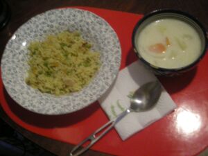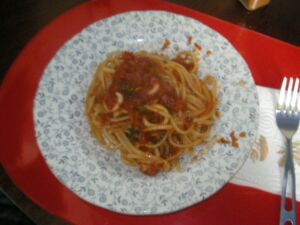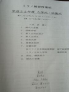 17日土曜日。なぜか雨、雨。 日本人学校の春休みが終わり、今日から日本人学校が始まります。日本人学校では、人数が少ないので、入園式、入学式、始業式皆一緒に式をします。外賓は、ミラノ総領事も出席するのです。 娘は、昨日から物凄いラストスパートで、日本語の宿題をしていました。いいことは、まとめてやる事によって、集中して覚えられるのか、漢字をたくさん覚えたようです。 しかも、ラッキーだったのは、17時開始だったので、ちょっとゆっくり出来ました。コレは式の目次。娘は、4年生に進級しました。この間、私たちは、スーパーに買出しに行きました。夕飯は、トルッテリーニと、野菜。 この星型のでないと食べない娘、星型のは、高いのだー!!普通のでいいでしょう!!?と言っても、嫌がる娘! パンがあるときは、実に美味しいのが、ズッキーニをにんにくとEvオリーブ油で炒めた時のオリーブ油の汁が美味しい!コレをパンに漬けて食べると美味しいです。 18日日曜日。 普通日曜日は、遅くまで寝て、一日中ユニクロの上下ルーム着を着て過ごすのに、今日は娘の聖体拝領式とかで、教会のミサ10時(普段、主人と娘が行くのは12時の)に出席後、保護者説明会、昼食会となっていて、主人が娘とミサ、その後私が説明会に行きました。私はカトリック教ではないのに........ ただ昼食会には、さすがに出席しませんでした。これに出席の場合、持ち寄り昼食会だからです。昼食は、リゾット・アラ・ミラネーゼ! ミラノ名物で、サフラン入りです。北イタリアで、よくお米が採れ、ミラネーゼはリゾット物がすきです。 午後、イチゴのタルトを作り始めた。夕飯は、ローマーノ(ミラネーゼに対して、ロマーノと呼びます)が愛する。アマトリチャーナ! 玉ねぎのスライス切り、ベーコン(豚肉の?部分が本当のレシピですが、ベーコンだと手に入りやすいので、ベーコンにしておきます)を切ったものをEVオリーブ油で炒めて、白ワインで少し蒸します。その後、トマトピューレを入れて、弱火で煮続けます。出来上がり、真ん中に穴があいているスパゲッティー、Bucattiniを使います。仕上げにペコリーノ・ロマーノをかけます。 ニンジンのサラダ。生です。イタリアのサラダは甘くて美味しいです。 夕飯の後、イチゴタルトを仕上げます。イチゴのフレッシュジュース+お砂糖を良く混ぜたものをかけます。我家のブームは、イチゴタルトです。週一の割合で作っています。