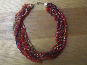 日本に帰って来て、先日見ると、私の娘と姪が私の超手間がかかりましたビーズネックレスで、遊んでいるではありませんか? そこでよく見てみると、私が20年前に作ったビーズネックレス!! ビーズが流行る前から、やっていたのですが、ちょっと変わったものが欲しから、自分で作っちゃおう!に変わりました。あの当時、青山にあったお店で教えてくれたりしました。 これは、時間がかかってますし、ビーズも流行る前だったので、たいしたものがありませんでした。そうそう渋谷LOFTでたくさんビーズが売られていた時代です。 そして、なんか思い出のものでも、ちょっと使えないかも?と、思って、箱の中に入れておいたままでしたが、今回姪が触っているのを見て、まだ使えるかも??と、思って、茶色のシャツに合わせてすると、なんとも合う事がわかり、今回活躍しました。 でも、あの頃は、コットン糸を使っていたので、壊れた!! 20年も経っているとね!!傷みやすいという事なんでしょう。だからイタリアには、持って行かないほうがいいかも?