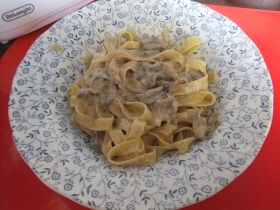 26日木曜日、晴れ、ミラノはまだ静けさに包まれている。まだ、ほとんどのミラネーゼは帰って来ていないのだ。 今朝は、お水をスーパーに買いに行った。重い!! お昼は、 le tagliatelli ai fungli porcini,ポルチーニのタギアテッリ。ポルチーニは、日本で言う松茸のようなもの。生は、9月から売り始めます。とても高いので、乾燥ものを買って、水で戻します。代表的な料理は、リゾットです。このほかのきのこを足しても美味しい、にんにくで、炒めて、白ワインで蒸して、クリームを入れて、茹で上がったタギアテッリを、あえて出来上がり 今日もpcの調子は悪いし、夜のラザーニャの為に、raguを作らなくてはならないし。 普段は、たくさん作るのだが、今回少なめ。でも、牛乳はあるし、ひき肉はあるしで、作ることにした。 しかも、今回月桂樹の葉がない!! 夕飯は、もちろんラザーニャ 結構前に、ラザーニャの作り方を載せましたが、このように生地をしいて、ラグーを敷いて、ホワイトソース、パルメザンをかけて、生地を敷きます。 久しぶりのラザーニャ!冬のメニューですが、久しぶりなので... 高カロリーのラザーニャには、さっぱりニンジンサラダ、ポン酢で食べます。 27日金曜日。 なんと日本出発前に、蒔いていった朝顔の種、今朝、花を発見!! ただ、紫色しか咲かない。昨日も咲いていたみたいだった。 イタリアでも見れるの日本の夏。反対側には、江戸風鈴がかかているので、結構日本の夏をしている。凄いのが、どこまでも伸びる蔓! スーパーにお使い。そして、新しい携帯が届いた。 今までのは、右の赤い携帯。パナソニックのもの。日本人としては、外国にいると、日本のメーカーのものが欲しくなるもので、Samsung?と、思ってしまいががちですが、これは、携帯電話の会社を替えるので、テクニック上3Gの携帯が必要とかで、たったの1ユーロで、もらえました。Vodafoneからfastwebに替えました。SAMSUNGとは言え、かなり凄い携帯!! お昼は、 昨夜のラザーニャの残り。日本で言うミートソースですが、作り方は、かなり違います。 今夜の夕飯は、 これも我家自慢のレシピ!ちょっと食べてしまいましたが、美味しいです。玉ねぎのみじん切りを、エクストラ・バージン・オリーブ油で炒めて、プチトマトを半分に切って、一緒に炒めて、そこに、ラザーニャ用の生パスタを三角形に切って、入れて、混ぜて、パイレックスのガラスの器に入れて、オリガノをかけて、モッツァレッラの賽の目切りを上からかけて、黒オリーブ特にリグリア産tagiascheをかけて、オーブンに入れて出来上がり。