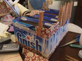 14日木曜日。もはや、誕生会まで、時間はない!!娘を学校に連れてゆき、スーパーへ行って、ケーキに必要な材料を買う。家では、まず洗濯。そして掃除。といっても整理。娘は細かいものが大好きなので、小さなこまごましたものばかり集める。娘を学校に迎えに行くまで、永遠と、続いた。午後、少し時間が出来たので、念願の箱作りをした。 私は、かなり貧乏性なので、空き箱を見つけると、何かに使えるのでは?と、いつも考えてしまう。しかも、もう日本でもかなり知られている、このFinishの箱は、かなり頑丈に出来ていて、結構に何かに役に立つのでは?と、いつも考えていたわけです。そこで思いついたのが、この5仕切り箱。 イタリアには、バレーゼ紙と言う有名な素敵なものがあります。この柄なら、画材屋さんなどでも、安く手に入ります。1枚0.90ユーロ(今円が高いから、100円)取り合えず3枚買いました。夕飯は、乾燥フンギ・ポルチーニのタギアテッリそして定番、ネギのタルト夜は、明日のケーキのスポンジを焼きました。