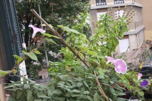 10月2日土曜日。 もう咲かないと思っていた朝顔。 しかも、2つも咲いていた。 いやいやの日本人学校の宿題。全くやる気無し。もう終わらないのが、分かっているので、泣きもせず。でも全部終わらなかった。3週連続で、先生に「終わらなかったので、家でやってきます。」では、信用性がうせるもの。 我家の近くにある名門Manzoni高校。先週の事件で、この日は、警察隊が、早くから構えていた。 そもそも先週起きた事件は、この名門Manzoni(マンゾーニ=イタリア文学の重要作家。ミラノ出身、ミラノの高級通りモンテナポレオーネ通りの近く、スカラ座近くより、マンゾーニ通りがあります。)は、公立の高校。イタリアでは、公立の学校は、基本的に左党系色が強い、ここに、先週の土曜日、右党系の学生が、マンゾーニ高校正面口にて、ちらしを配り始めたところから、右党対左党の、喧嘩が起きて、最後は暴力的発展になるほど、結局警察隊の出動で、収まりをつけたが、この喧嘩ちょうど我家の真下で、繰り広げられていた。テレビのニュースにも、取り上げられるほどで、さすがに、この土曜日は、早くから、警察隊が準備していた。このものものしさ、ただなにも起こりませんでした。 さて、このマンゾーニ高校は、写真中央。建物も歴史的な素敵なものです。 イタリアでは、高校は5年間。文系、理系、語学、美術に高校で分かれます。このマンゾーニ1学年9クラス、各クラス30人弱です。昼食は、ご飯。地下鉄で、日本人学校へ、この日、かなりの遅刻でした。学校では、保護者会。この日の話題は、「漢字」。次に授業参観。そして、懇談会。焦点は、「漢字」。日本人でさえ、苦労する漢字。普段接しない外国に住んでいる日本人子女、ハーフの子らには、かなり難しいことがあります。 しかも日本の学校で行なう1週間分を、土曜日の3時間で教える事は、かなり厳しい。新出漢字の書き順まで、出来ない。確か、1年生の頃から、時間がないから、家でやってください。と、言われてきたようなキがします。これが、話題でした。この後、皆でコーヒーへ行き、一息。また地下鉄で、帰りました。夕飯は、 fior di zucca、季節もう終わりそうなので、食べ惜しみしました。てんぷら粉は、昭和のです。かりっとして美味しい。バルサミコ酢をつけて食べます。 ついでに、ズッキーニ、ニンジン、ネギのてんぷら。これもバルサミコ酢を使います。デザートは、アイス。市販の物です。 イタリアでは、有名なManum=マーニュム。 このように、アイスをチョコで包んだところに、さらにチョコを被せてあります。しかもコレは、ビターチョコ。