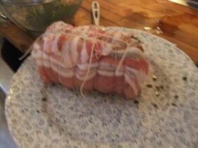 7日木曜日。8時半学校に、娘を連れてゆく。家に帰ってきて、pcで仕事。お昼、またammatriciana,主人が作ってくれるからうれしいが、それにしても、いつもこのammatriciana!旦那には、たまらないそうなのだが、私にとっては、明日pcをしたくないから、今日中に終わらせたいのに、なかなかはかどらない。午後もpc。4時半に娘を学校にむかえ行く。今日は友達の家には行かない。全然、日本人学校の宿題をしない罰!!娘の誕生会パーティーの為に招待状を作る必要があるから、画材屋に行って、画用紙を買った。今夜は、豚のロースと、Arista!!もうお馴染みですが、 豚ローストでも、Aristaは、肉中をホークで刺して、塩・胡椒を良くまぶします。そして、ベーコンの下には、ローズマリー、セージ、にんにくのみじん切りを良くまぶし、上にベーコンを敷いていきます。 よくEXバージンオリーブ油にて炒め、焦げ目をつけてゆきます。そこを、白ワイン蒸しにし、コンソメ(温かい)を入れて、ローズマリー、セージも入れて煮込みます。 コレが出来上がり、切った後なので、少ないですが、こんな感じに仕上がります。 汁がこのように、濃厚になるまで、じっくり煮ます。ジャガイモのオーブン焼が良く合います。