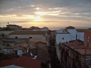 28日木曜日。 朝6時45分に起きると、朝日が見えた。やっと晴れましたが、シラクサから内陸にある街Noto(ノート)、海のないバロックの街です。町に着くなり、雨が降り出しました。この道を下に降りてゆくと、バロック様式の広場に出くわします。降りてきた道から広場に出ると、直ぐにこの教会の横に出ます。この広場の真ん中に、このカテドラルが聳え立ちます。豪壮です。元病院だったそうです。この前の道を下に降りてゆくと、Notoで有名なお菓子屋さんアンド喫茶店に着きます。シチリアはアーモンドの特産地です。アーモンドの粉を使っているのか、とにかく軽い!!私は、このチョコクリーム・ケーキを食べました。 シュークリーム好きの娘は、この大きなシュークリームにしましたが、ぺろりと食べてしまいました、。アーモンドのお菓子。アーモンドのムース、なんも軽い口触りで、デリケートで、美味しい!!主人と義妹はこれを選びました。お菓子屋さんの前の通り、どうやらここがNotoのメイン通り!!バロック様式の建物、シチリアには、たくさんの貴族がおりました。道もなんとも味がございます。教会、目の前に劇場がある。 ますます雨は強くなります。にほんブログ村