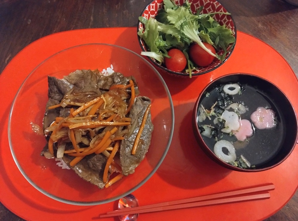 金曜日の夜は、一人牛丼お昼にママ友達とランチ会+カヌレ・カフェを楽しみ、おしゃべりをした後は、スーパーに行ってお使い。一人牛丼