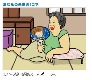 みなさま、こんにちは。MARO★です。先日、こんなものを発見しました。 未来予測マシーン5つの質問に答えるだけで自分の未来を予測できてしまうマシーンなのです。※あくまでも予測です。さっそくe-お見合いスタッフの未来を予測!今回は結婚についての結果を発表です。※あくまでも予測です。【よもぎ】「ねぇ、あたしと結婚する気あるの」「うーん、いまはちょっとまだ・・・」「あたしたちもう5年よ」「わかってるよ」「ぜんぜん、わかってないわよ」「そんなことないって」「できちゃったみたいなの」「え・・・」「飼ってるカニが卵を」・・・翌月結婚することに。よもぎちゃんがまさかヨン様にハマる日がくるなんて!!今から韓流について勉強しといた方がいいんじゃないかな!?【ととん吉】式場で「文金!!高島田!!」(振り付き)というギャグをするために何となく結婚。結婚生活は当然うまくいくはずもなく自分の高度なギャグを理解しない夫に対する不満がつのる。その不満が頂点に達した日に「りこ~~~ん!」というギャグによってハラホロヒレハレと破局。なぜ彼女は無理をしてバレリーナの道に…全ては未来のことなので現時点では謎ですね。【MARO★】自宅に帰る途中の道で、酔い潰れて寝ているスーツ姿の男性を見かけたので家に連れて帰って介抱する。その男性が実はIT系の会社社長でヒルズ族。あなたの優しさに心を奪われた男性の猛アタックを受け、3年間の交際を経てゴールイン。幸せな家庭を築き、カリスマ主婦として週刊誌に引っ張りだこになる。という内容の妄想ブログを開設した所、「キモい」「妄想乙」といった批判のコメントが殺到し大炎上、3日で閉鎖する。私はビンから頭が抜けるのでしょうか・・・これから先、ビンには気をつけたいと思います。【まりも】お腹が死ぬほど空いていた時に、おにぎりをくれた彼と結婚。理由はそれだけ。「もしあん時さ、おれがおにぎりあげてなかったらどうしてた?」「うーんそれでも結婚はしてたと思うよ」「なんで?」「好きだから」「そっか」ごまかしつつも不思議としあわせ。こんな結婚もありかも婚。まりもちゃん、近所の付き合いがうまく行かないのかな…心配…【黒酢】と【あずき】笑顔が素敵だから、という理由で相手を好きになり結婚するが、のちにそれが悲しい気分のときにする表情であったことが判明。逆に楽しい気分のときは仁王のように険しい表情に、怒っているときは能面のように無表情になる人だった。寝てるときは、すっぱいものを食べたときの顔をしている。二人一緒のダンススクールに通ってコーチの取り合いとかすればいいと思います。【みかん】世界一コーラの一気飲みが早い男と結婚。リスペクトできる相手と結ばれることを望んでいたあなたにとって「世界一」の彼は理想の相手とも言えたが、コーラを飲むのが早いところ以外特に取り柄もなかった。晩年、ほんとはコーラが嫌いだったということが判明。コーラスの発表会にはぜひ招待してねみんなと行くよ【結婚】のほかにも【人との出会い】・【仕事】・【ターニングポイント】などの項目があって、中には酷い内容が書いてあることも・・・でも、あくまでも予測なので。みなさんもお試し下さい★e-お見合い★で素敵なお相手見つけましょう★★★ 是非クリックしてくださいね ★★★