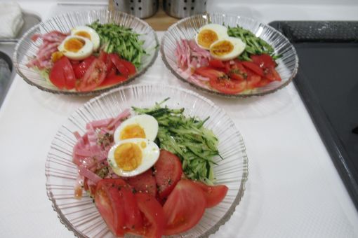 ​​ ​​ ​​昨日は買い物に行き、「暑くなったので何かサッパリした物が食べたいね」と冷やし中華にしました、息子は胡麻ダレで、ぷーさんと私は柚子ポン酢にマヨネーズで戴きました、美味しかったです。ぺろり