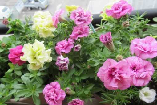 ​​八重咲ペチュニアがたくさん咲き始めました、ゴージャスですリビングを網戸にしているので花の香りが入ってきます。