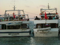 何だか疲れたな、やる気がでないな、と思ったらちょっと遠回りして家に帰ることにしています。船に乗ってヨーロッパ側の出先から船でアジア側に渡り、バスに乗り換えて今度はボスポラス大橋を渡ってヨーロッパ側の自宅へ。なんてことが可能なのも、イスタンブルならでは。雨や霧でなければ少々寒くても、船の外甲板に座って景色を眺めていると、ここにいられる幸せを再認識できて、またやる気がでてくるのです。 金閣湾から旧市街の夕景 旧市街とアジアサイドを結ぶ船からアジア側 左がヨーロッパ右がアジア イスタンブルは、海で2つに分けられています。ボスポラス海峡(イスタンブルボアズ)でアジア側(アナドルヤカス)とヨーロッパ側(アヴルパヤカス)。更に、中心に近いヨーロッパ側は金閣湾(ハリチ)で旧市街と新市街に分かれています。スルタンアフメット地区のある半島はマルマラ海に向けて張り出しているので、概ね、アジア側と旧市街の間にある海はマルマラ海で、アジア側と新市街の間にある海はボスポラス海峡になります。ボスポラス海峡をジグザグと進むボスポラスクルーズは一日がかりになるので特別なお出かけという感じですが、金閣湾をジグザグ進む船や、アジアサイドとヨーロッパサイドを結んでいる定期便は地上を走るバスの海版という感じで気軽に使えます。 船を降りて、海沿いの道を釣り人たちを眺めながら散歩するも良し、船から岸辺に立ち並ぶ100年物の家々を眺めるも良し...