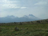 初めてトルコに来た時に、私は心を奪われた。日本に帰って、トルコに恋をしました~。と言って苦笑された。人とかものとか単体ではなくて、この国に心を奪われた。今でもそれは変わっていない、私はDilbend。トルコ全体、どこも面白いけれど、私の中で、一番はやっぱりカッパドキア。何万年前かいつのことか、自然の産み出した不思議な世界今のアクサライ近くにあるハサン山(3262m-左写真の右端の山)とメレンディズ山(2963m-左写真の中央より左よりの山)カイセリの近くにあるエルジェス山(3916m-右写真)の3つの火山の爆発による堆積物の風化と地形変動によってできたというきのこの家族がいたり... らくだがいたり、モアイがいたり...岩に穿たれた住居跡があったり、 季節や時刻で岩の表情が変わる所早朝、暁の明星と共に気球に乗り、空から日が昇るのを眺めるもよし、岩の中を鳩になった気分で冒険するもよし、暑い日には小鳥のさえずりを聞きながらポプラの繁る谷を散策するもよし...一日を過ごした後は、夕日を眺めながら自然の驚異にただただため息をつくのみ...